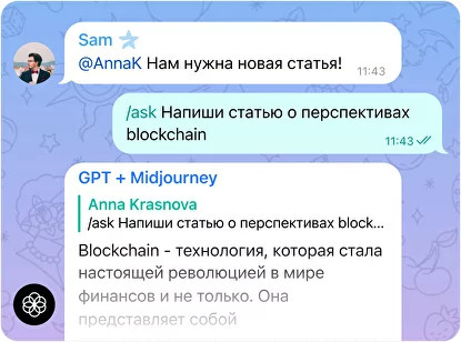 Добавьте бота в чат с друзьями или коллегами и наслаждайтесь совместным использованием.